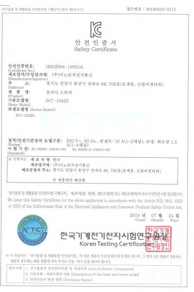 [전기안전인증서] INT-1042S 외 파생모델 (19.07.24)